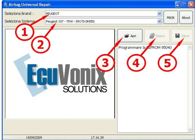 * Airbag Universal Repair has a information box that help the operator to identify the memory to read; also, the button Mask identify a memory catalogued in accordance to standard Bosch and Motorola.